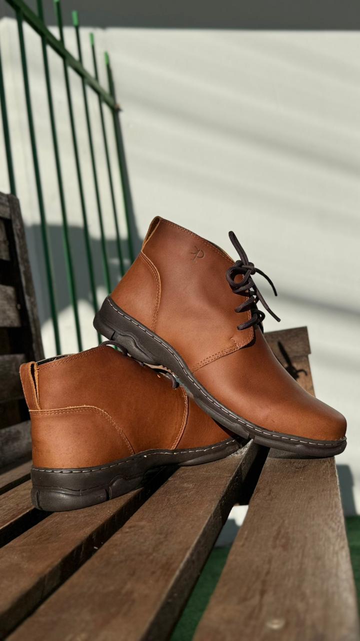 Produto feito em couro com um solado emborrachado reforçado, palmilha ortopédica em gel. A botina ideal para o seu dia a dia.